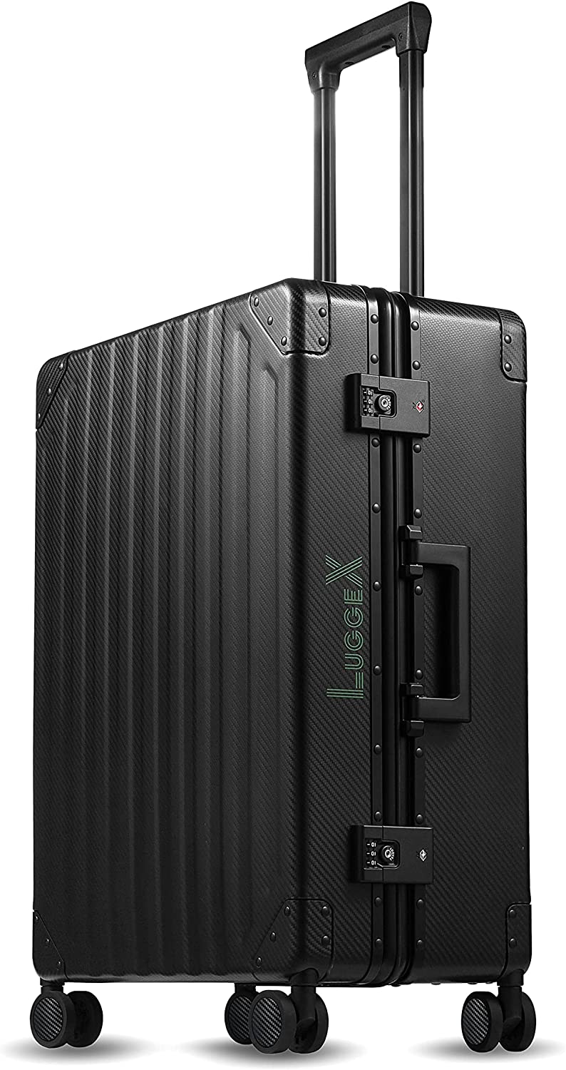 LUGGEX สัมภาระอลูมิเนียมตรวจสอบแล้ว, กระเป๋าเดินทางโลหะกระเป๋าเดินทาง24 นิ้วไม่มีซิป, รูป แบบคาร์บอนไฟเบอร์ที่มีคลาสสำหรับการเดินทางที่สง่างาม (กระเป๋าเดินทางโลหะพร้อมล้อ)