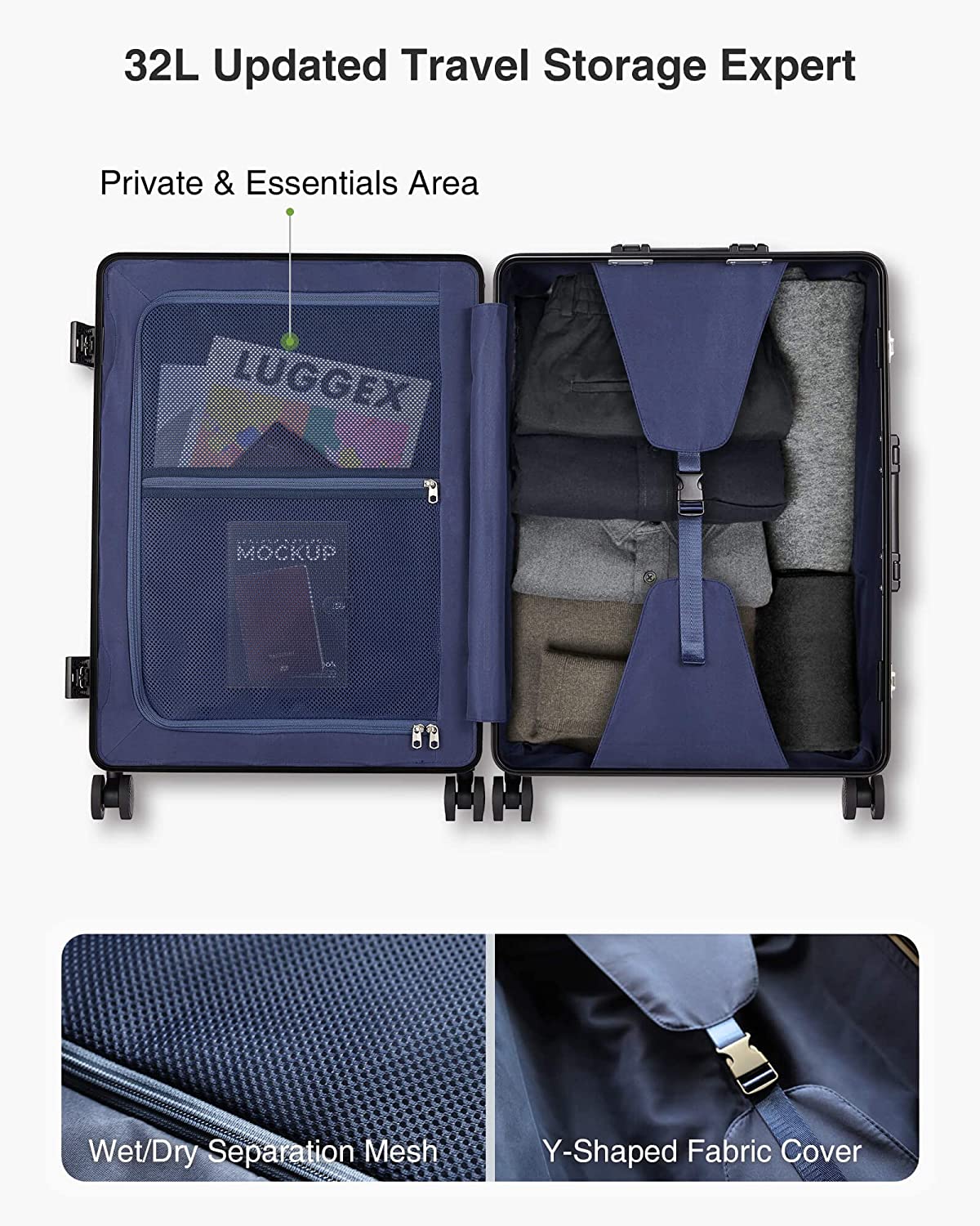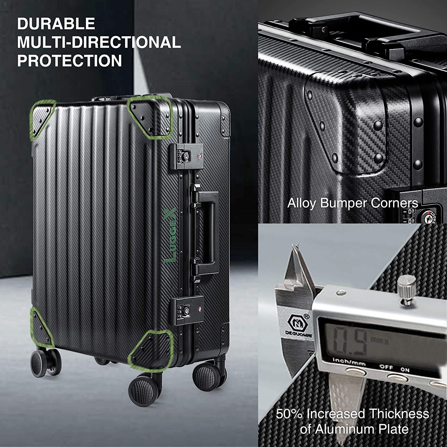 LUGGEX สัมภาระอลูมิเนียมตรวจสอบแล้ว, กระเป๋าเดินทางโลหะกระเป๋าเดินทาง24 นิ้วไม่มีซิป, รูปแบบ คาร์บอนไฟเบอร์ที่มีคลาสสำหรับการเดินทางที่สง่างาม (กระเป๋าเดินทางโลหะพร้อมล้อ)