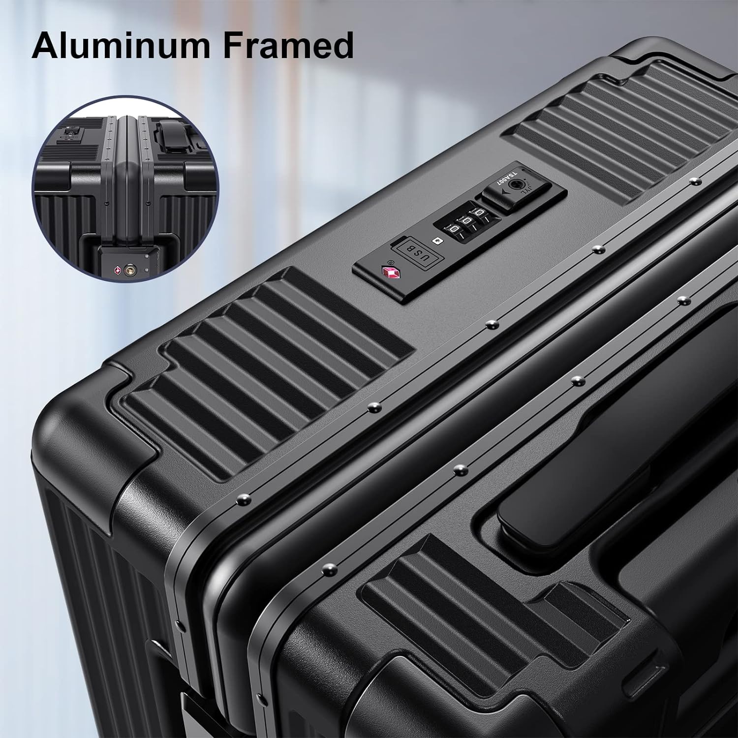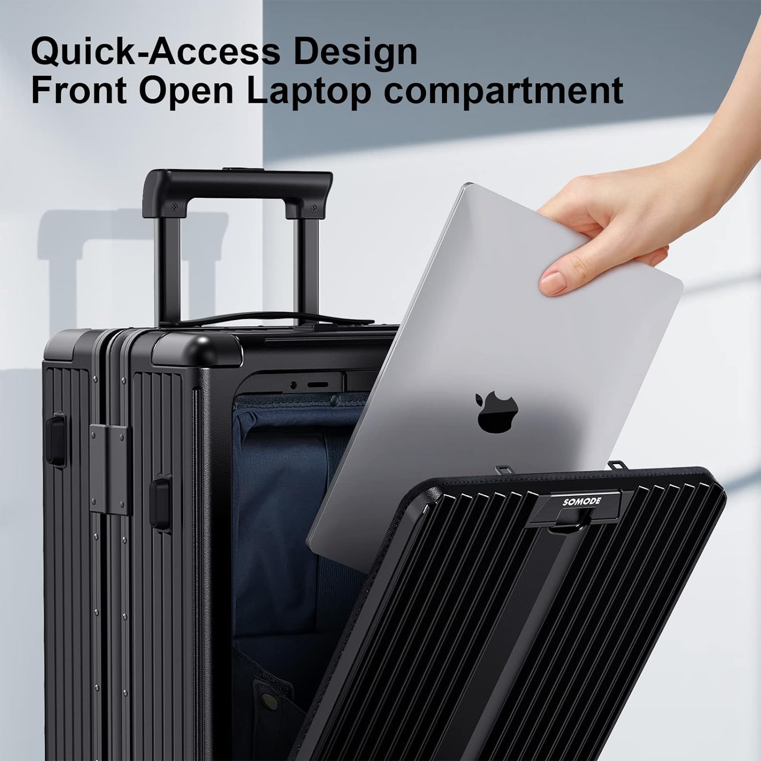 กระเป๋าเดินทางแบบถือขึ้นเครื่องที่ได้รับการอนุมัติจากสายการบิน SOMODE พร้อมล้อหมุน กระเป๋าเดิน ทางแบบถือขึ้นเครื่องที่มีโครงอลูมิเนียมพร้อมช่องใส่แล็ปท็อปแบบเปิดด้านหน้า/กระเป๋า 22×14×9 นิ้ว กระเป๋าเดินทางขนาดใหญ่สำหรับเช็คอิน (สีขาว)