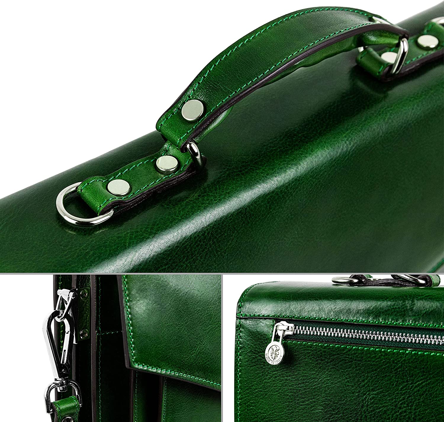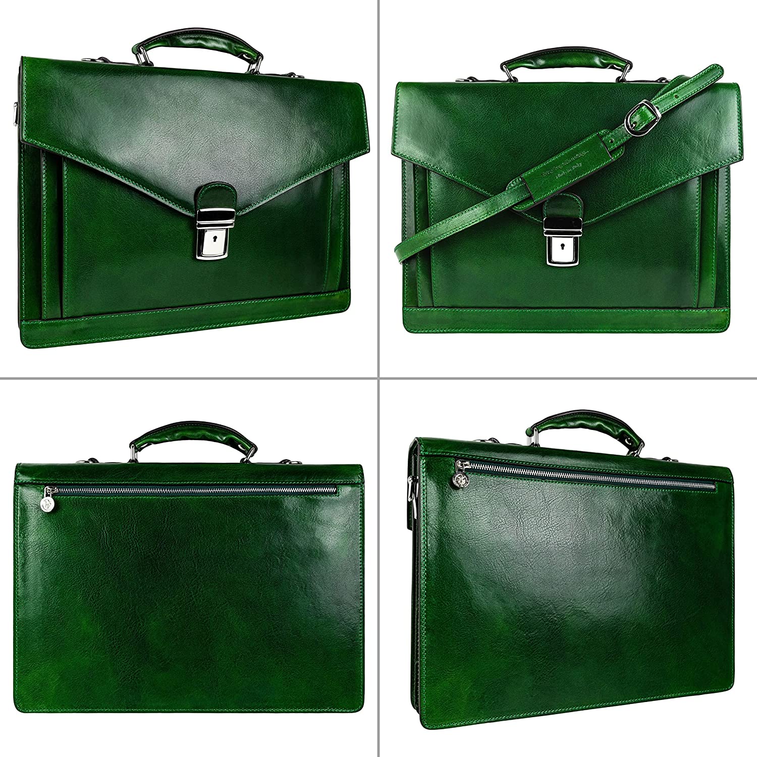กระเป๋าเอกสารหนังทนทานต่อเวลาสำหรับผู้ชายกระเป๋าแล็ปท็อปอิตาลีแฮนด์เมดเคส Attache สี นํ้าตาลสีส้ม