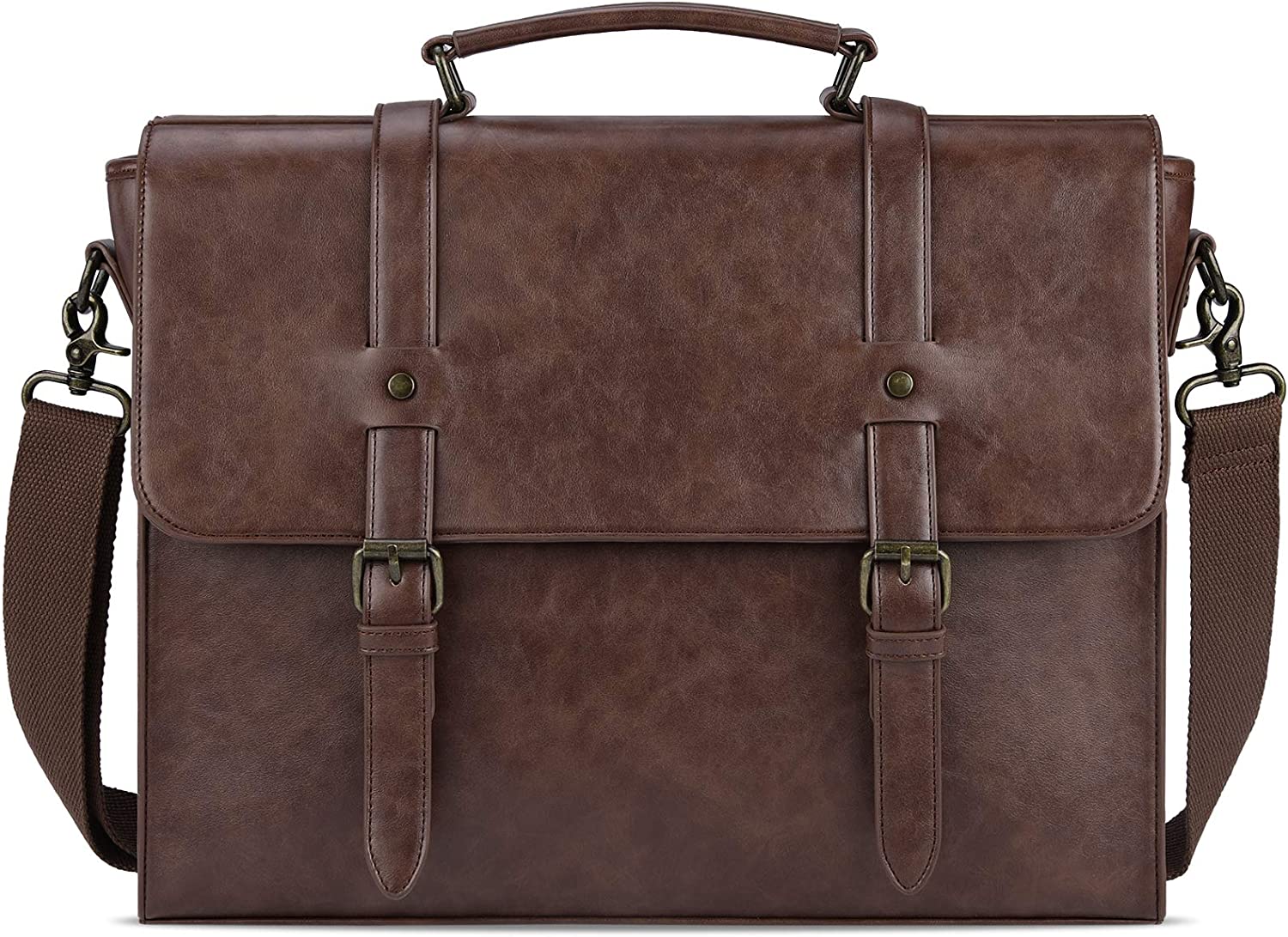 กระเป๋าส่งผู้ชายหนัง กระเป๋าเอกสารแล็ปท็อปหนังกันน้ำวินเทจ 15.6 นิ้ว กระเป๋าสะพายไหล่ขนาดใหญ่ กระเป๋าแล็ปท็อปคอมพิวเตอร์วิทยาลัยย้อนยุค