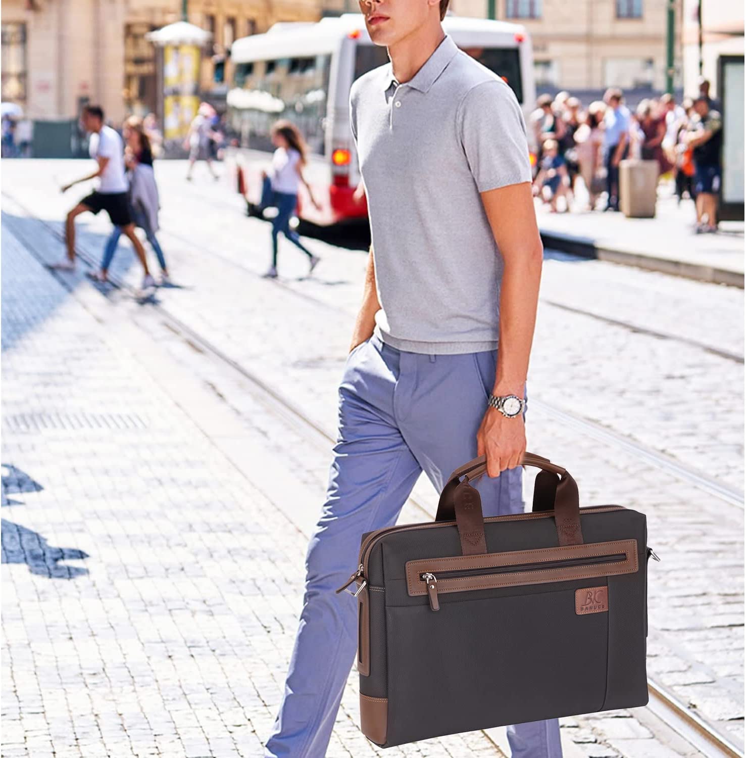 กระเป๋าเอกสาร Banuce ไนลอนกันน้ำสำหรับผู้ชายเดินทางเพื่อธุรกิจ กระเป๋าแล็ปท็อป 14 นิ้ว กระเป๋า ทํางาน