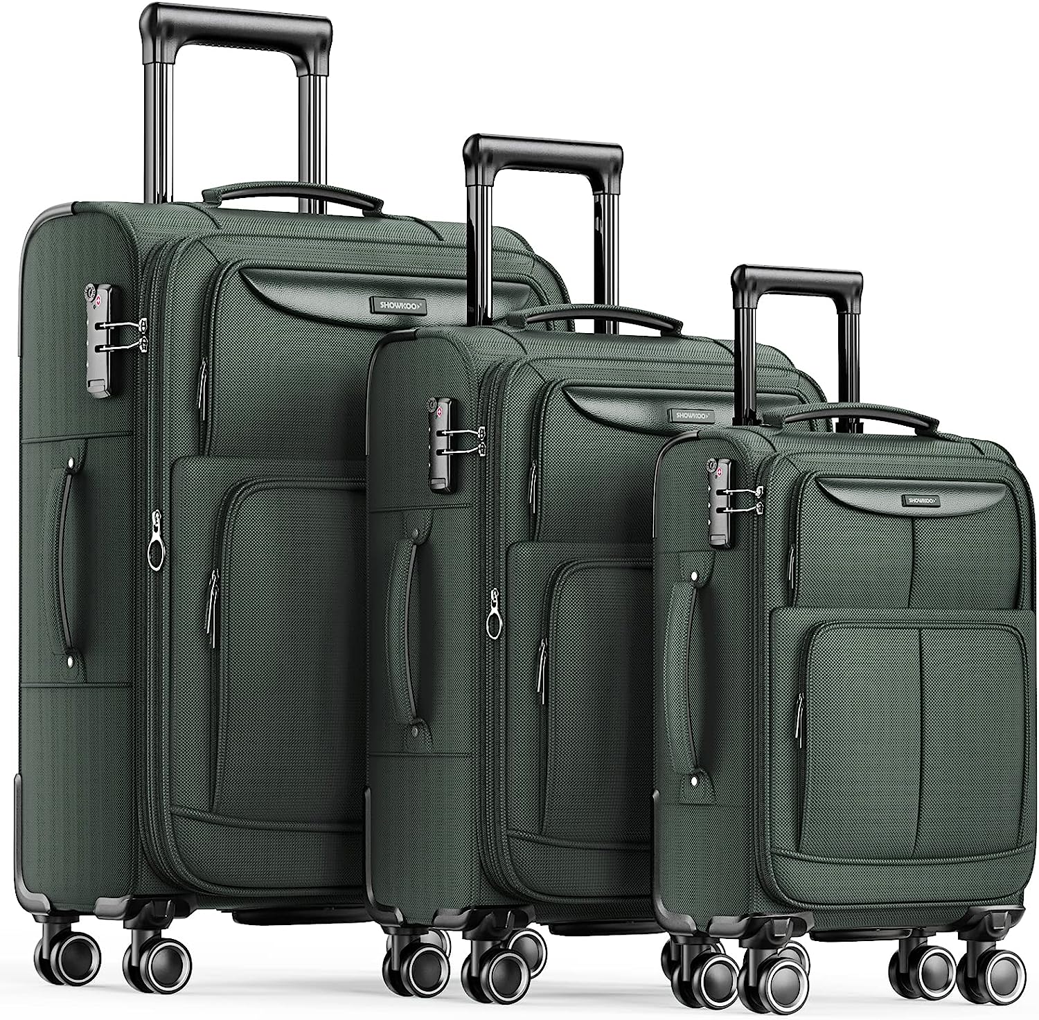 SHOWKOO ชุดกระเป๋าเดินทาง 3 ชิ้น ชุดกระเป๋าเดินทางน้ำหนักเบาทนทานขยายได้ 3 ชิ้น ล้อสปินเนอร์คู่ TSA Lock สีศา (20 นิ้ว/24 นิ้ว 28 นิ้ว)