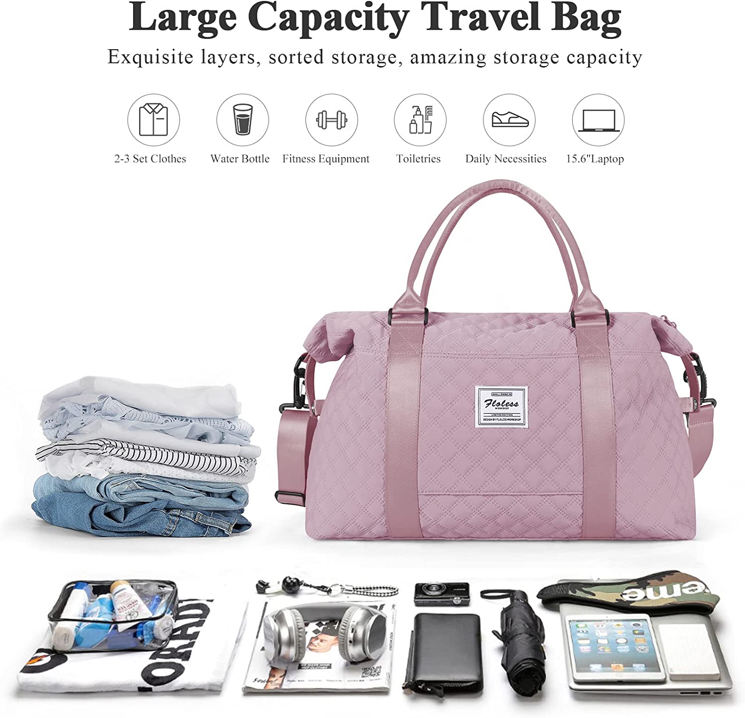 กระเป๋าเดินทาง HYC00, กระเป๋าออกกำลังกายแบบสปอร์ต, กระเป๋าสะพายหลังค้างคืนสำหรับผู้หญิง