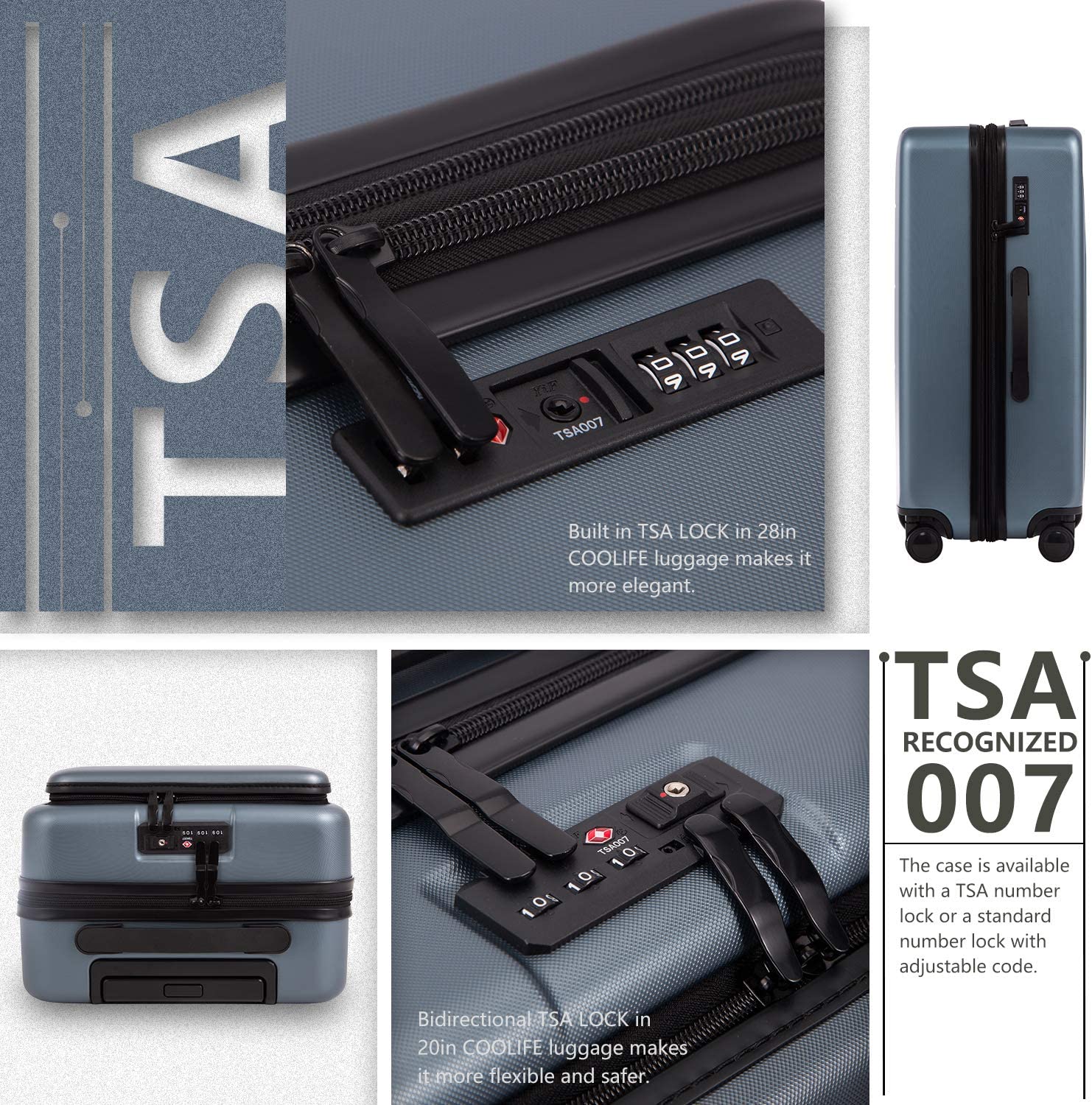 COOLIFE กระเป๋าเดินทางแบบมีล้อลากพร้อมกระเป๋าใส่สัมภาระแบบมีช่องใส่ของ ABS+PC สำหรับเดิน ทางท่องเที่ยว (สีชมพูซากุระ ขนาด 20 นิ้ว (เดินทางได้)
