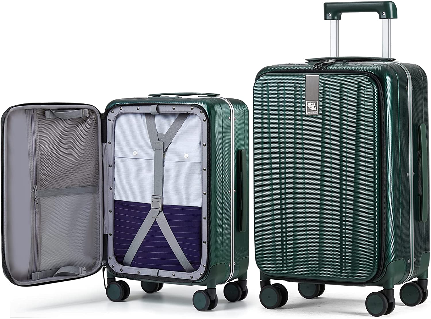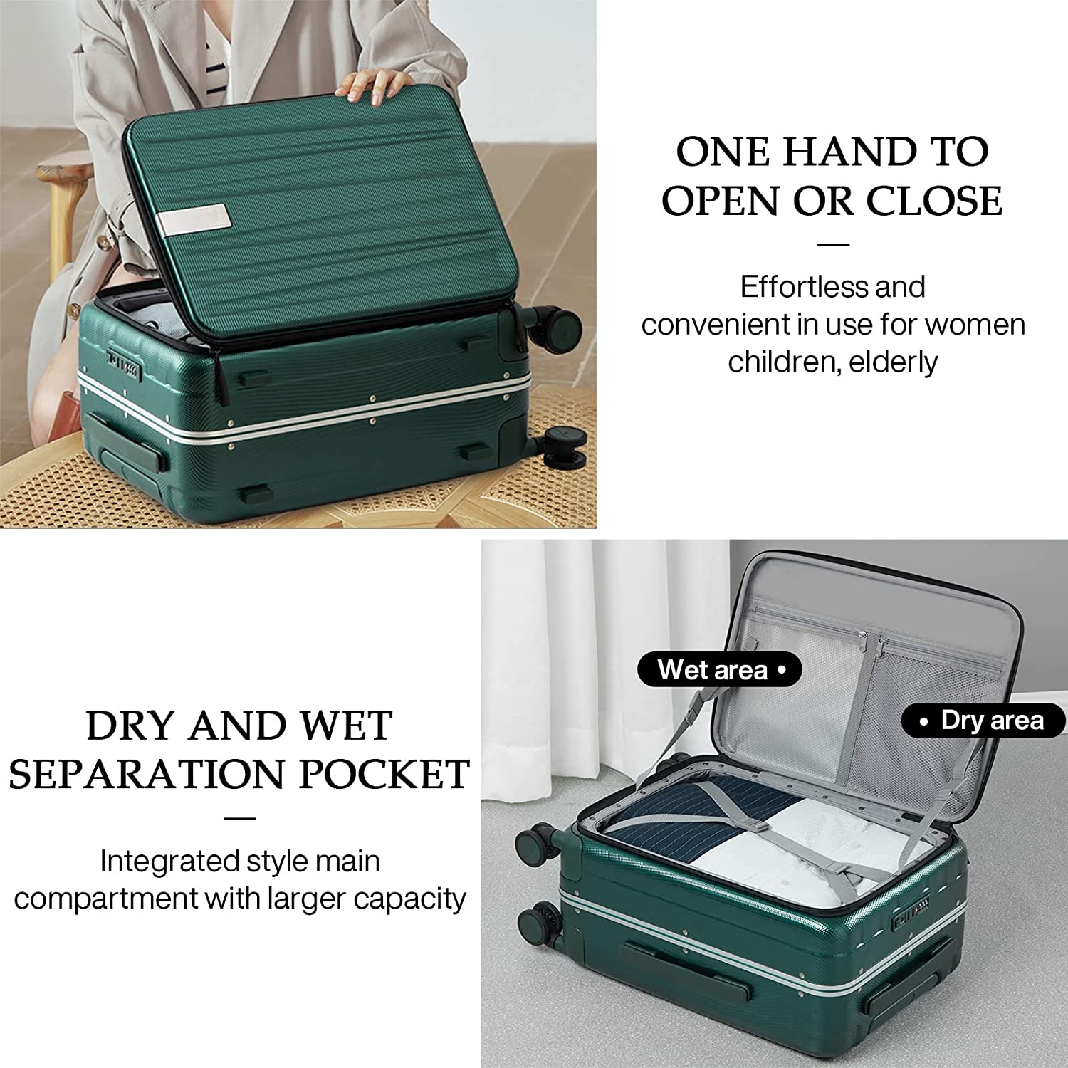 กระเป๋าเดินทางแบบแข็ง Hanke มีล้อและช่องเปิดด้านหน้า ขนาด 24 นิ้ว กระเป๋าเดินทางแบบลากพร้อม โครงอะลูมิเนียมและ PC พร้อมระบบล็อก TSA - สีเทา