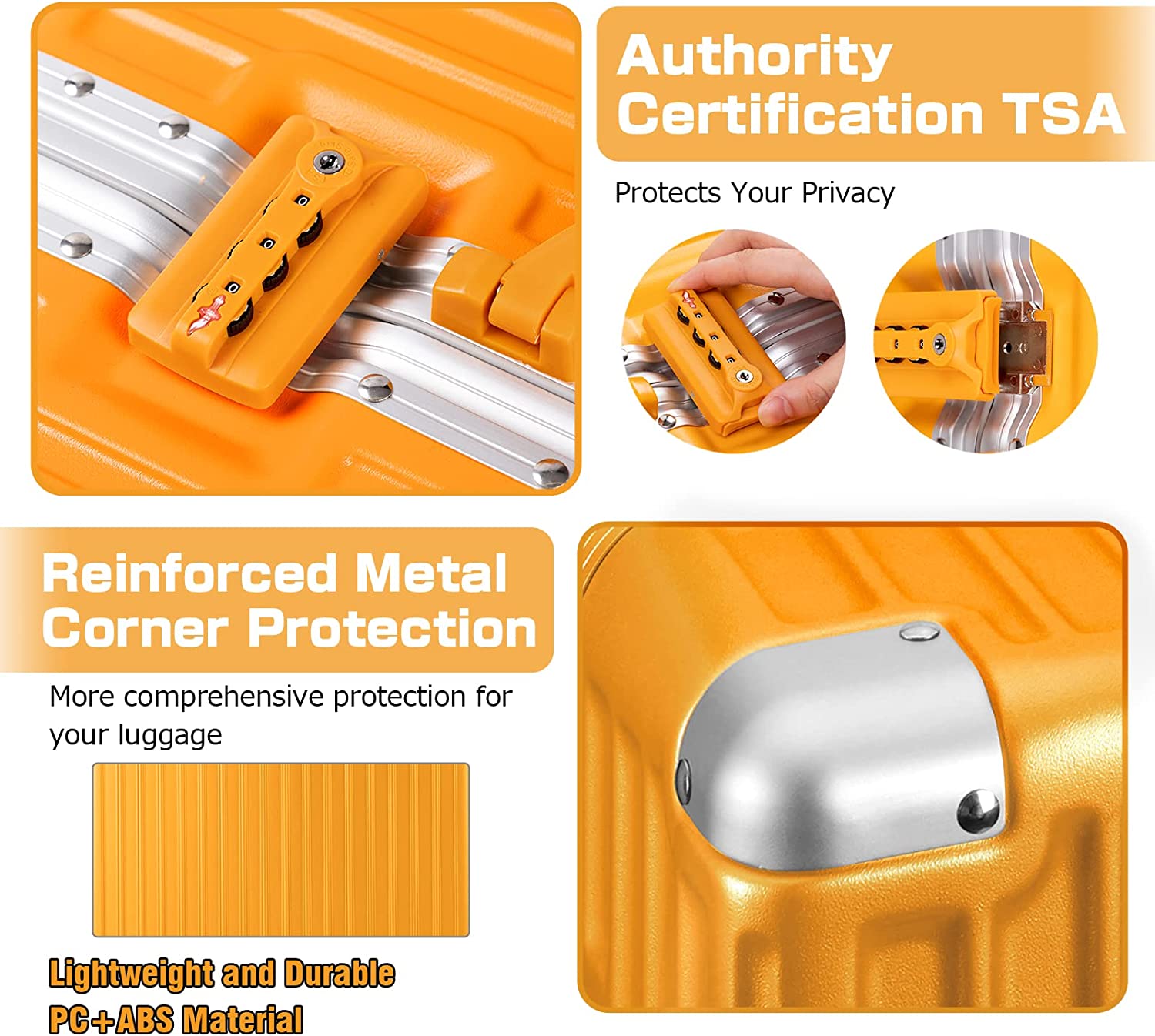 กระเป๋าเดินทาง AnyZip โครงอะลูมิเนียม เปลือกแข็ง ล็อค TSA ไม่มีซิป 28 นิ้ว สีเหลือง
