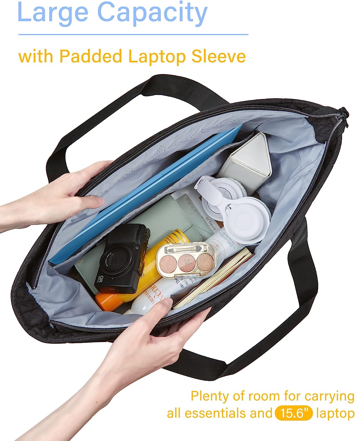 BAGSMART กระเป๋าผ้าควิลต์, กระเป๋าถือด้านบนสำหรับผู้หญิง, กระเป๋าสะพายไหล่, กระเป๋าโฮโบ ขนาดใหญ่ 25 ลิตรสำหรับทำงาน, โรงเรียน, ท่องเที่ยว