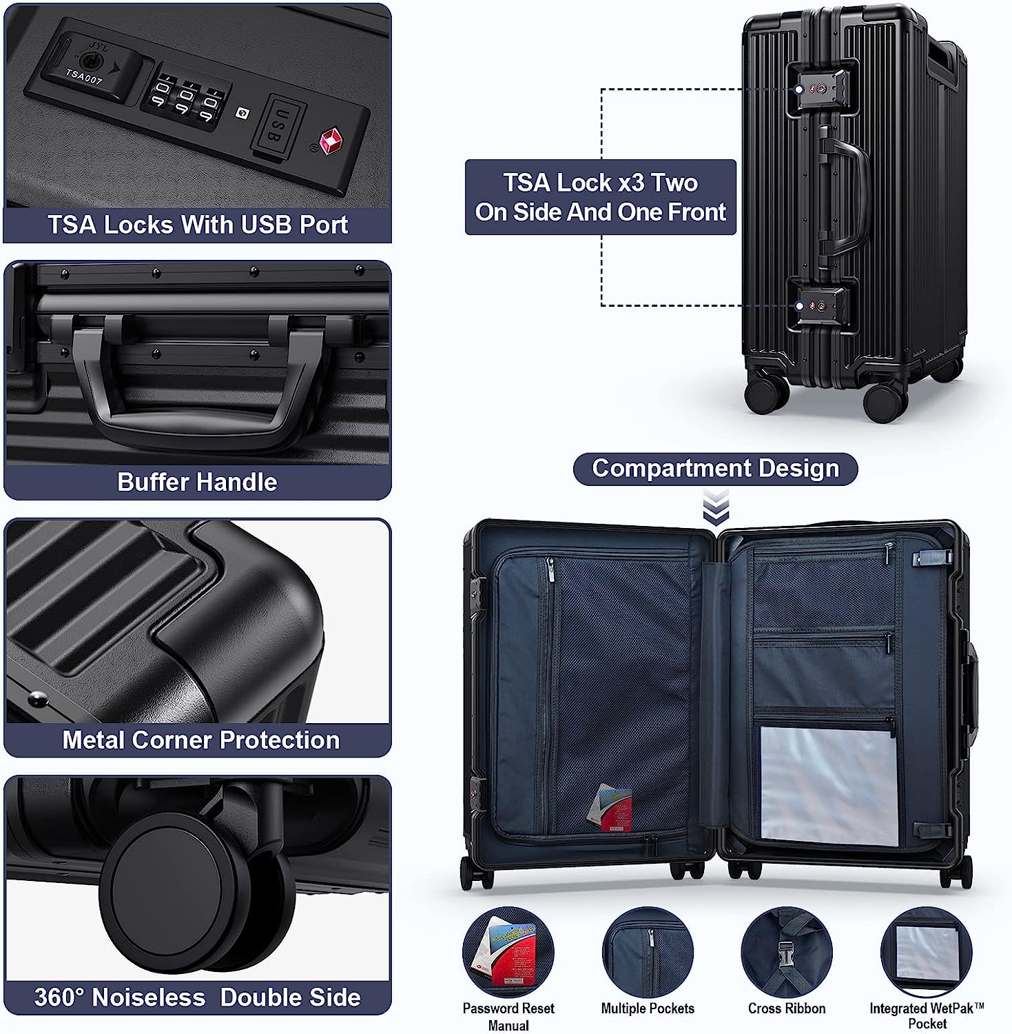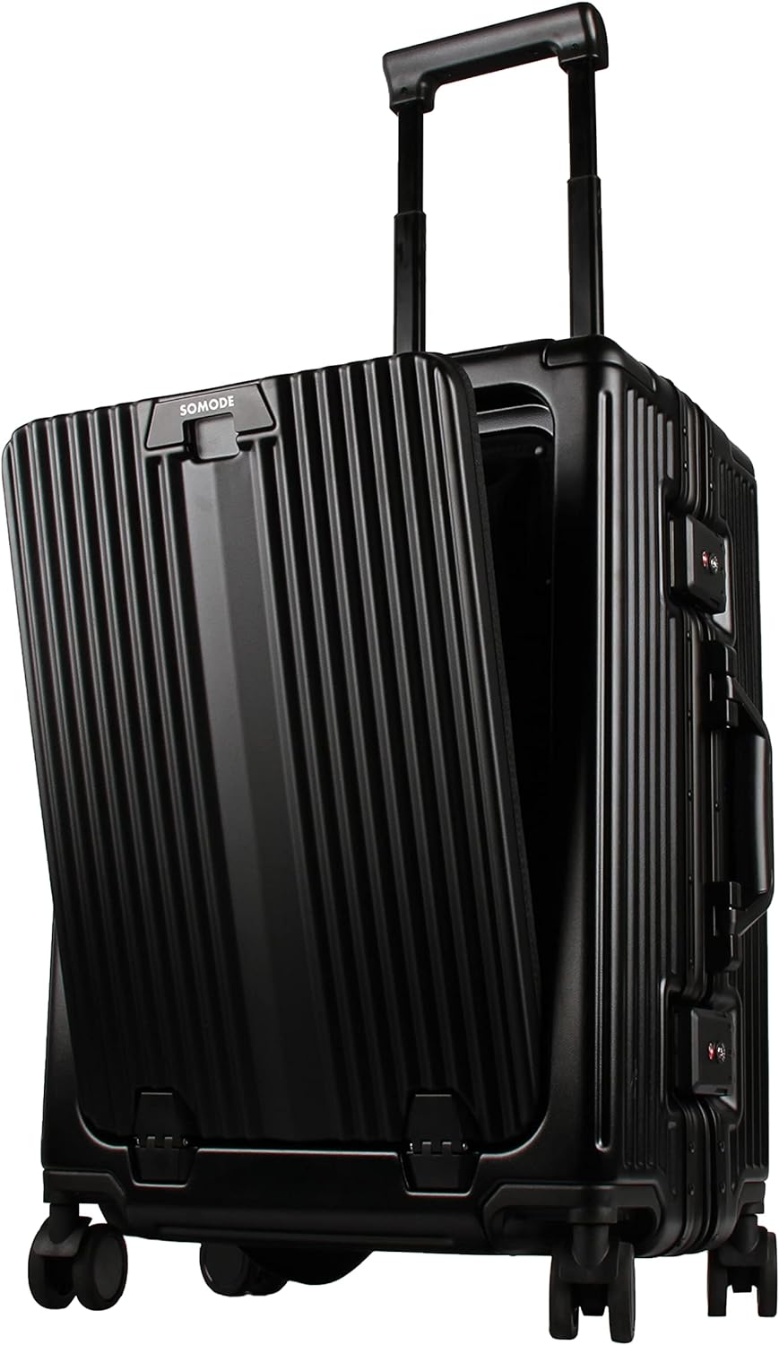 กระเป๋าเดินทางแบบถือขึ้นเครื่องที่ได้รับการอนุมัติจากสายการบิน SOMODE พร้อมล้อหมุน กระเป๋าเดิน ทางแบบถือขึ้นเครื่องที่มีโครงอลูมิเนียมพร้อมช่องใส่แล็ปท็อปแบบเปิดด้านหน้า/กระเป๋า 22×14×9 นิ้ว กระเป๋าเดินทางขนาดใหญ่สำหรับเช็คอิน (สีขาว)