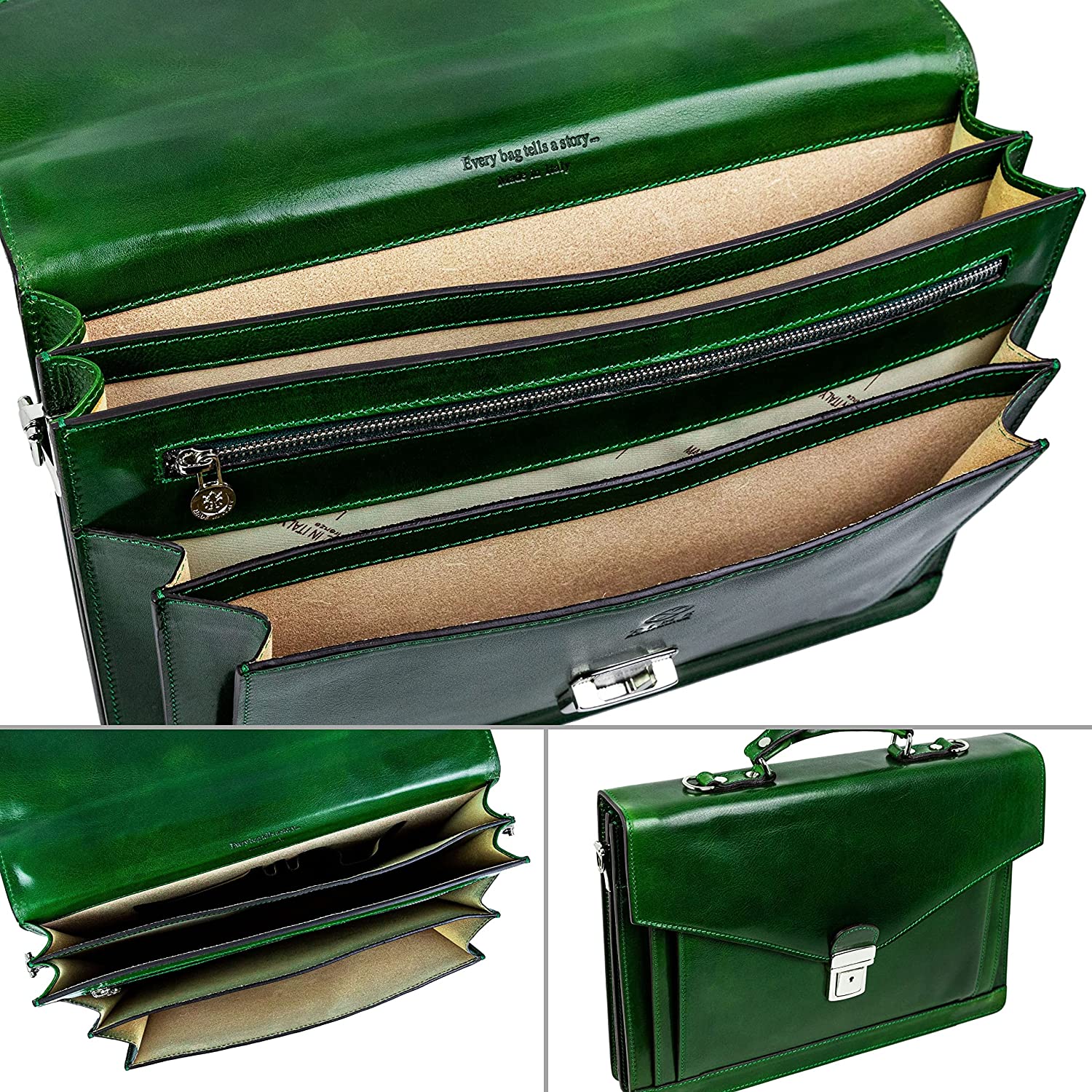 กระเป๋าเอกสารหนังทนทานต่อเวลาสำหรับผู้ชายกระเป๋าแล็ปท็อปอิตาลีแฮนด์เมดเคส Attache สี นํ้าตาลสีส้ม