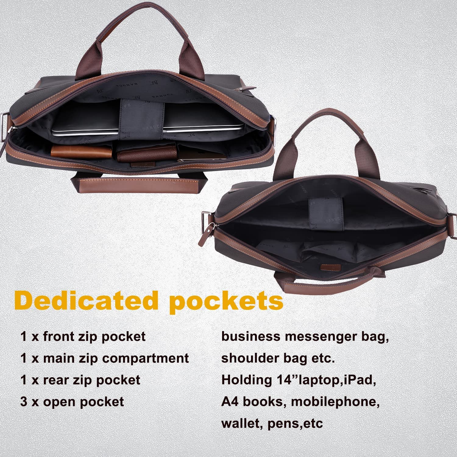 กระเป๋าเอกสาร Banuce ไนลอนกันน้ำสำหรับผู้ชายเดินทางเพื่อธุรกิจ กระเป๋าแล็ปท็อป 14 นิ้ว กระเป๋า ทํางาน