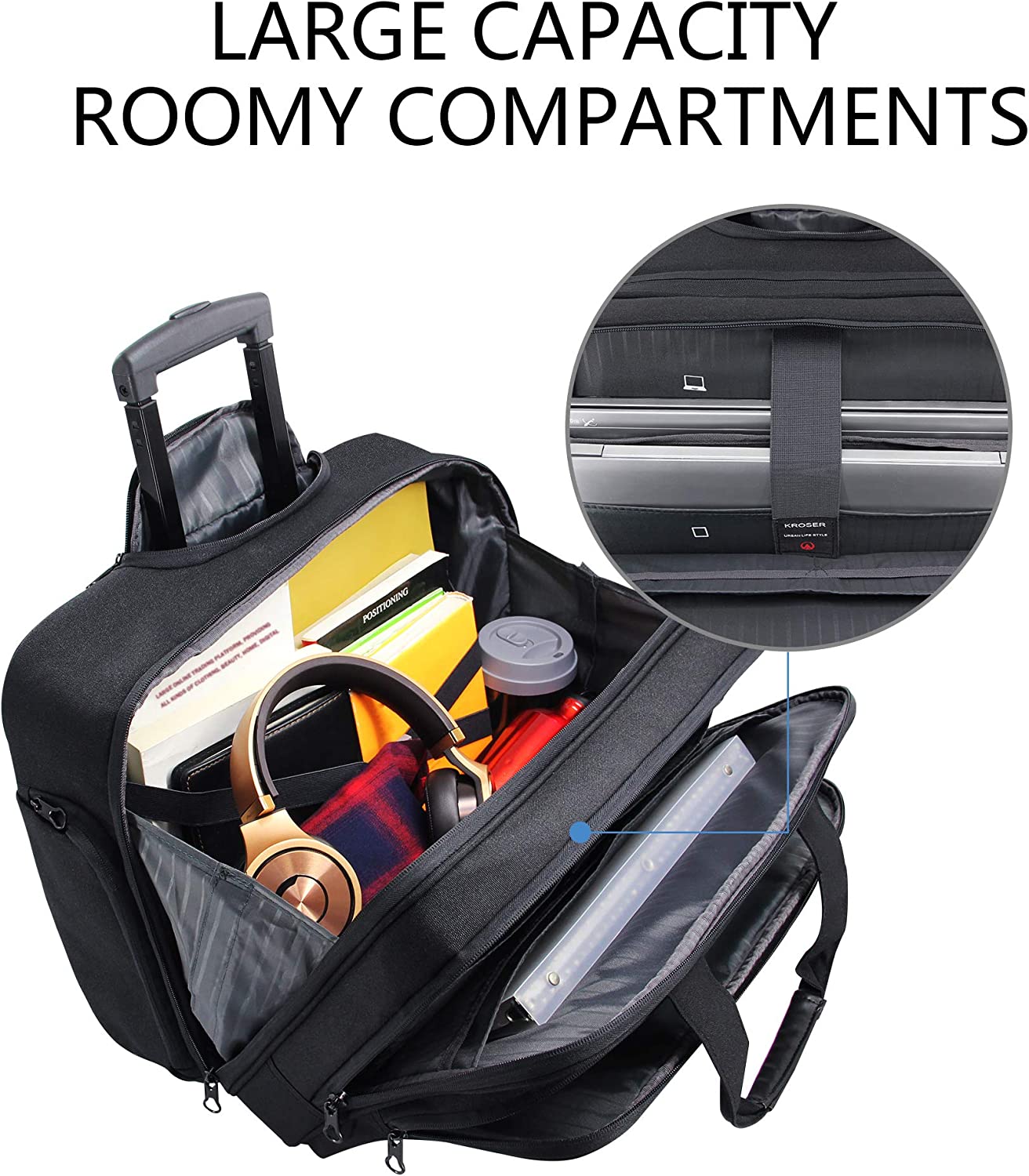 KROSER กระเป๋าแล็ปท็อปแบบม้วน กระเป๋าเอกสารล้อพรีเมียมเหมาะสำหรับแล็ปท็อปกันน้ำได้ถึง 17.3 นิ้ว กระเป๋าคอมพิวเตอร์พร้อมกระเป๋าคอมพิวเตอร์พร้อมกระเป๋า RFID สำหรับการเดินทาง/ธุรกิจ/โรงเรียน/ผู้ชาย/ผู้หญิง-สีดำา