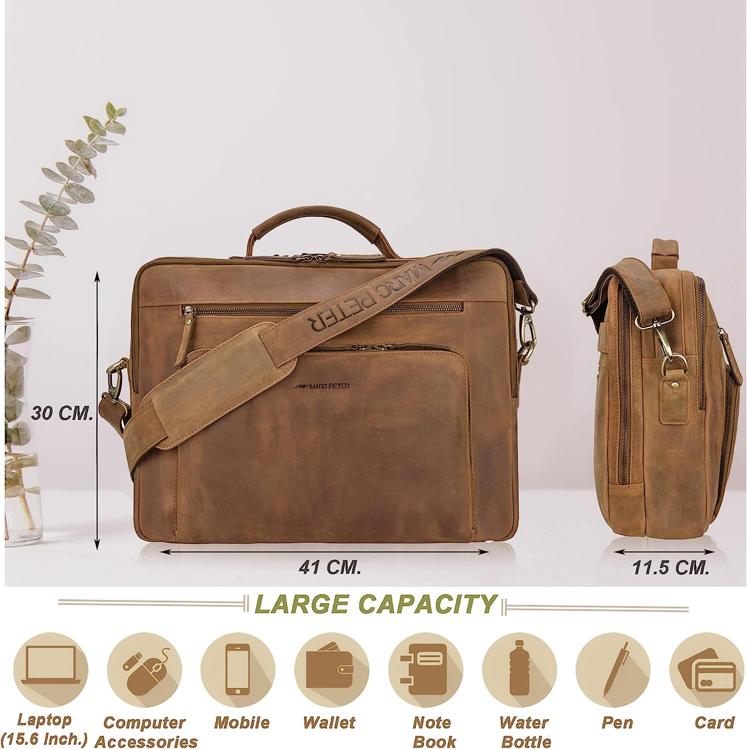 กระเป๋าแล็ปท็อปหนังแท้ Marc Peter Auckland กระเป๋าไหล่สำหรับแล็ปท็อป 15.6 นิ้ว | กระเป๋าเอกสาร สำหรับ