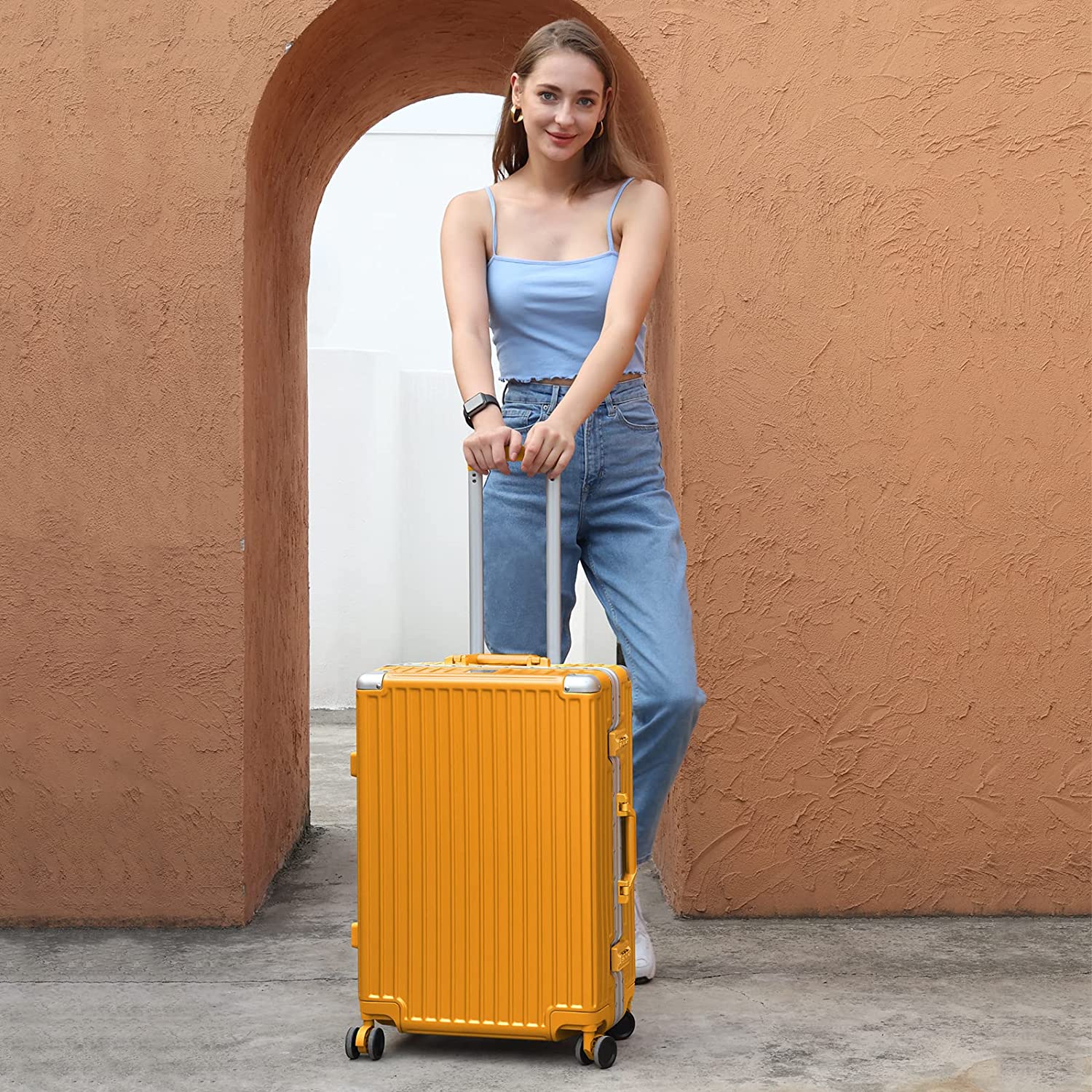 กระเป๋าเดินทาง AnyZip โครงอะลูมิเนียม เปลือกแข็ง ล็อค TSA ไม่มีซิป 28 นิ้ว สีเหลือง