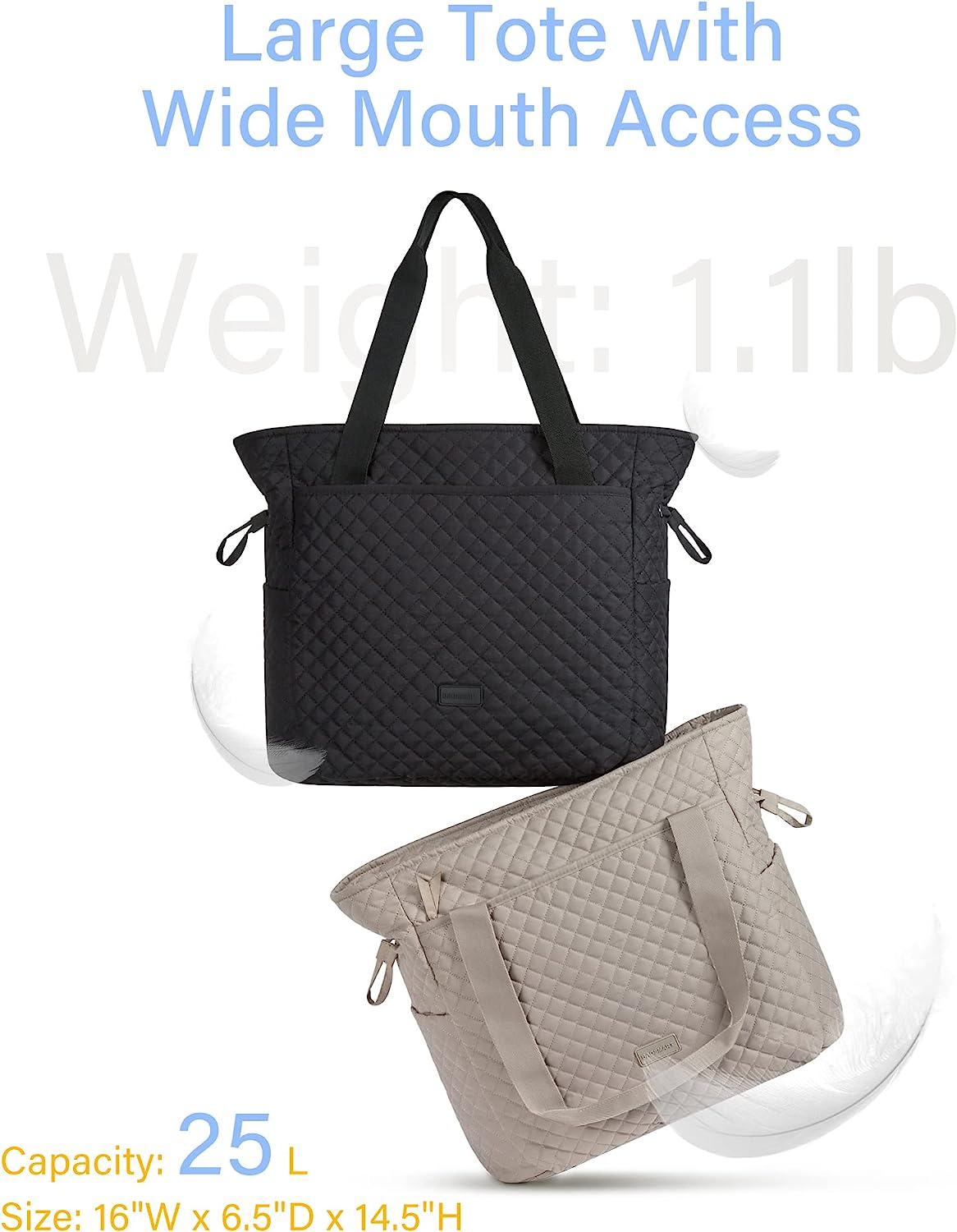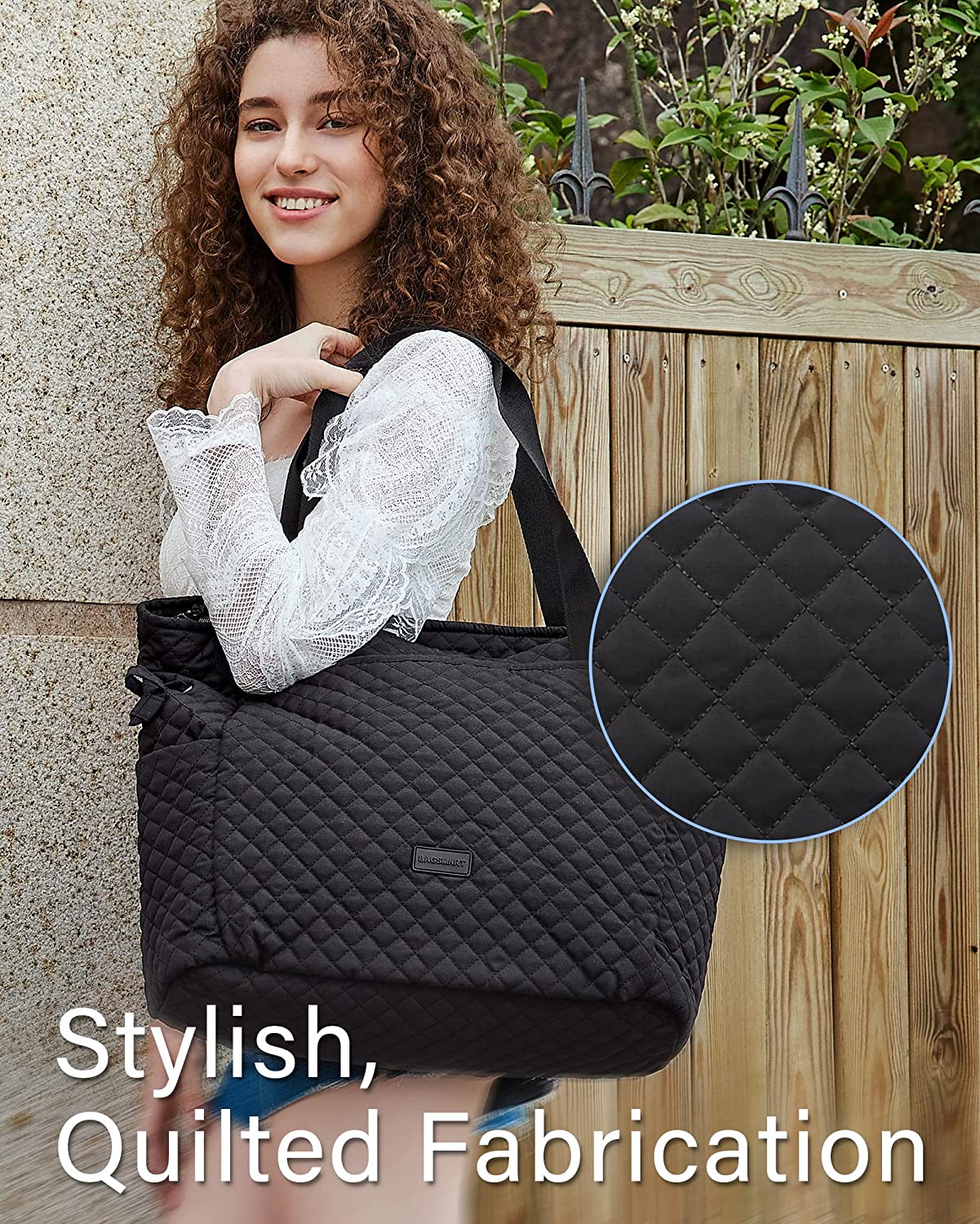 BAGSMART กระเป๋าผ้าควิลต์, กระเป๋าถือด้านบนสำหรับผู้หญิง, กระเป๋าสะพายไหล่, กระเป๋าโฮโบ ขนาดใหญ่ 25 ลิตรสำหรับทำงาน, โรงเรียน, ท่องเที่ยว